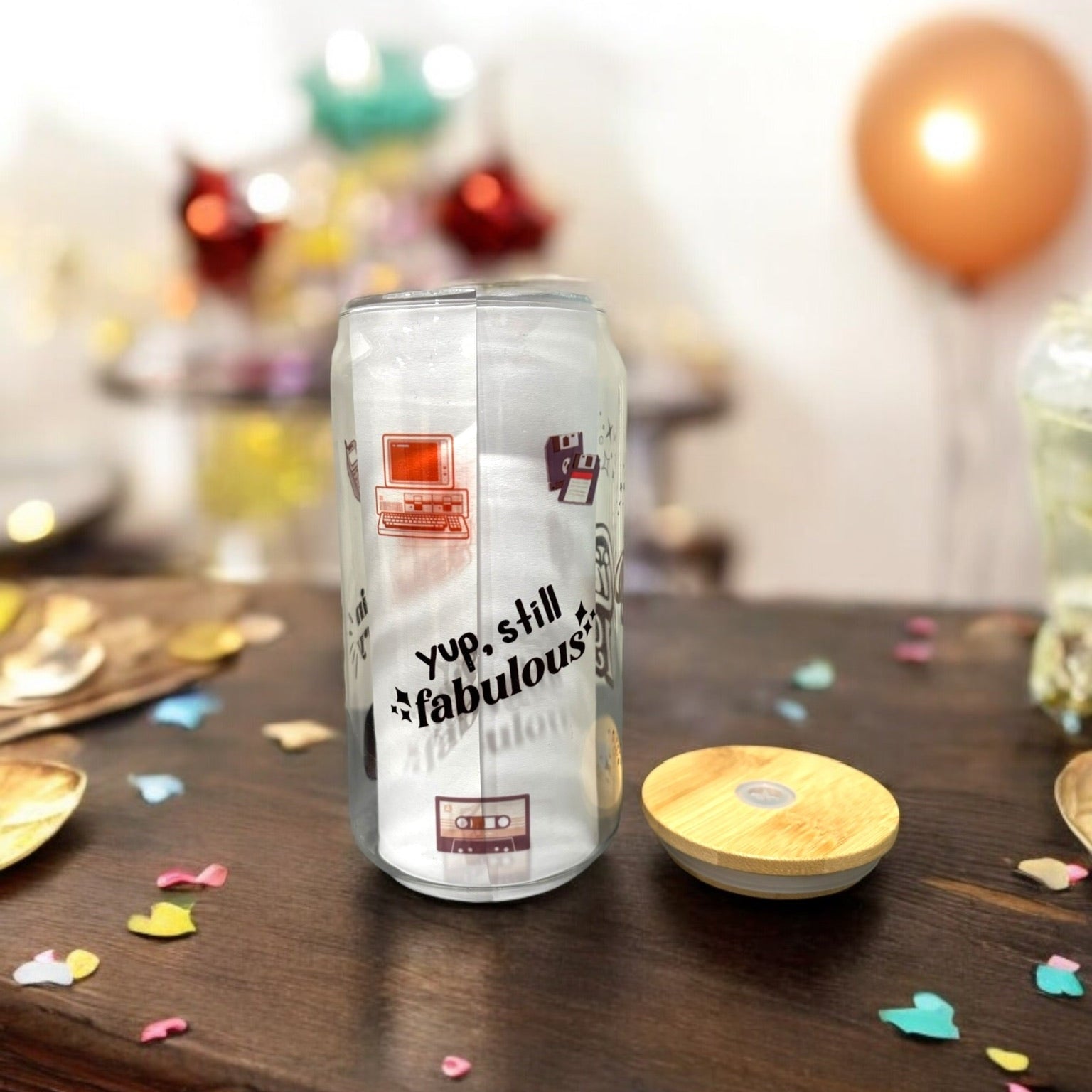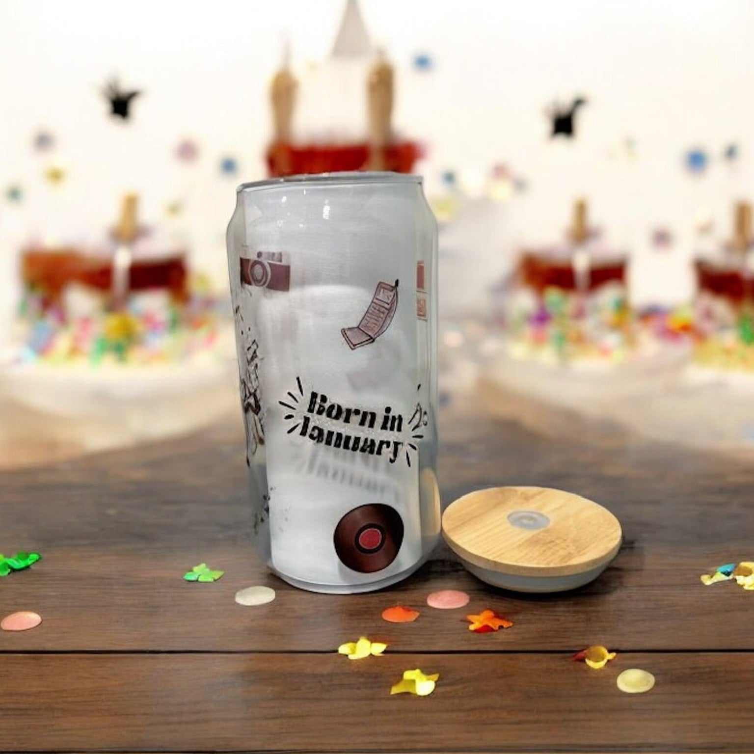 Introducing the 16oz Clear Glass Cup - 1981 Vintage Edition. This unique cup features a vintage design from the year 1981, with the month of birth.
