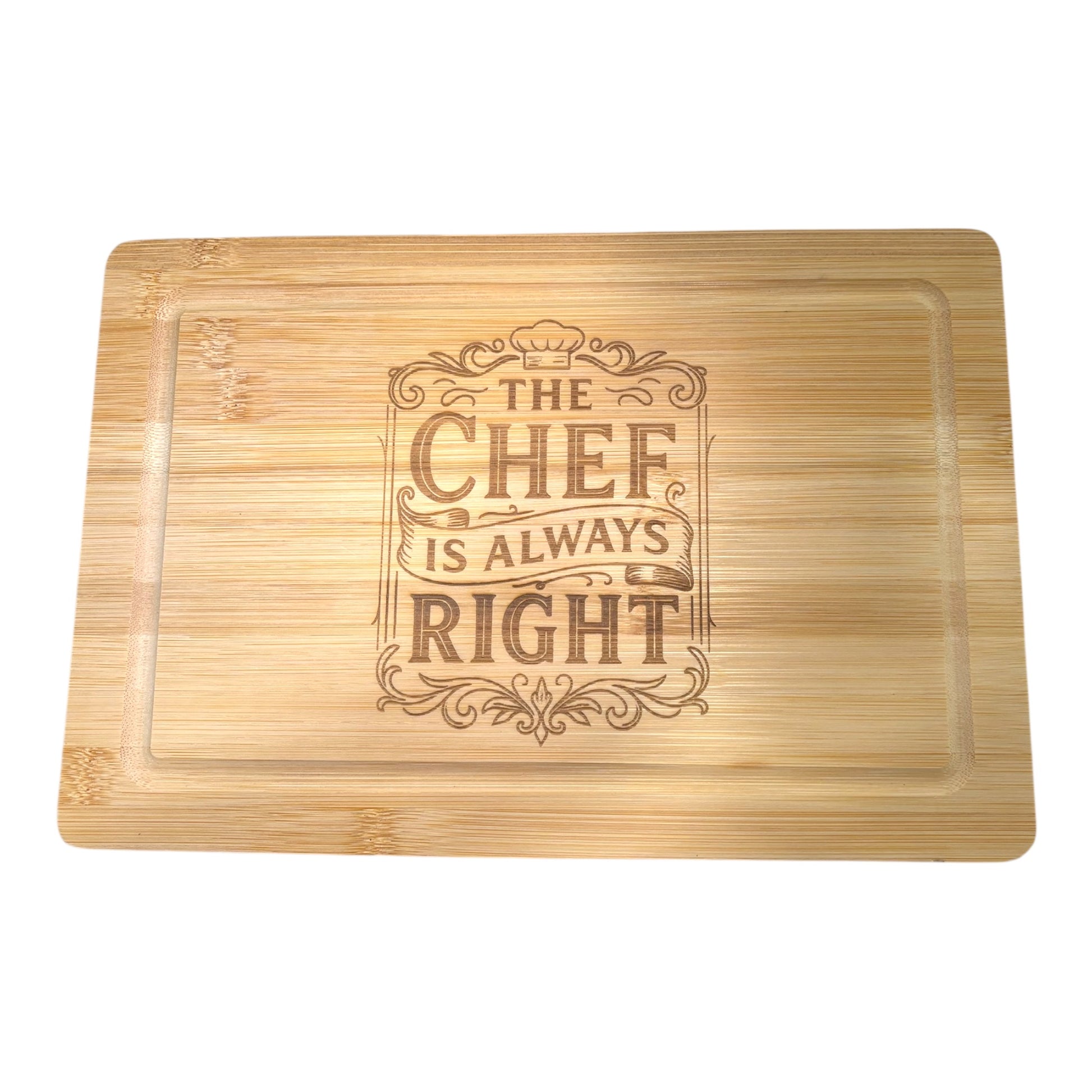 Personalized Bamboo Cutting Board – ‘The Chef Is Always Right’ – Funny Gift for Dad, Husband, or Chef – Engraved 11x7 Kitchen Board for Father’s Day