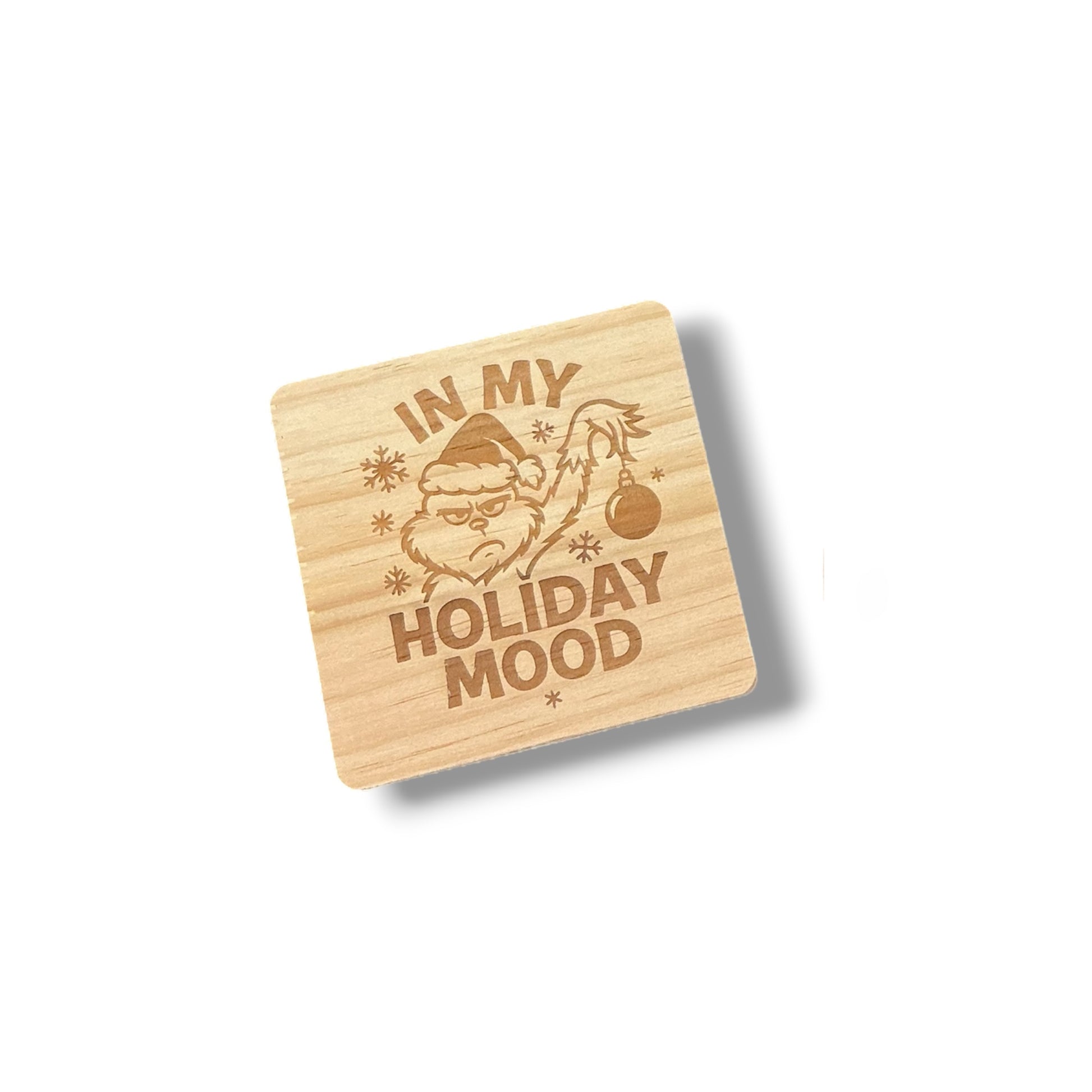 This Funny “In My Holiday Mood” engraved coaster brings just the right mix of holiday spirit and attitude. Laser-engraved on natural wood, it’s durable, eco-friendly, and guaranteed to spark a laugh (or a knowing smirk). Perfect for coffee, wine, or cocoa and makes a great small gift for friends, coworkers, or anyone who loves a little grumpy Christmas fun.