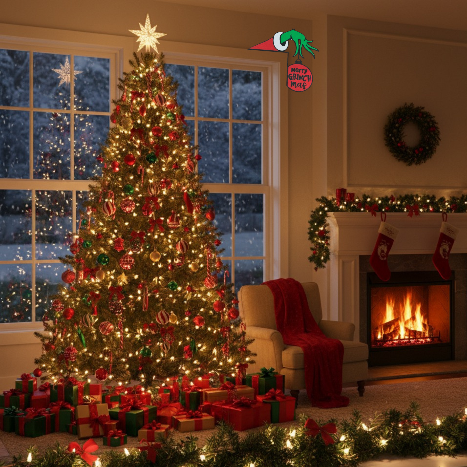 Most Christmas decorations look the same cheerful, sparkly, and safe. But if you love a little mischief in your holiday style, this funny green hand holding an ornament adds the perfect twist to your door or window display.