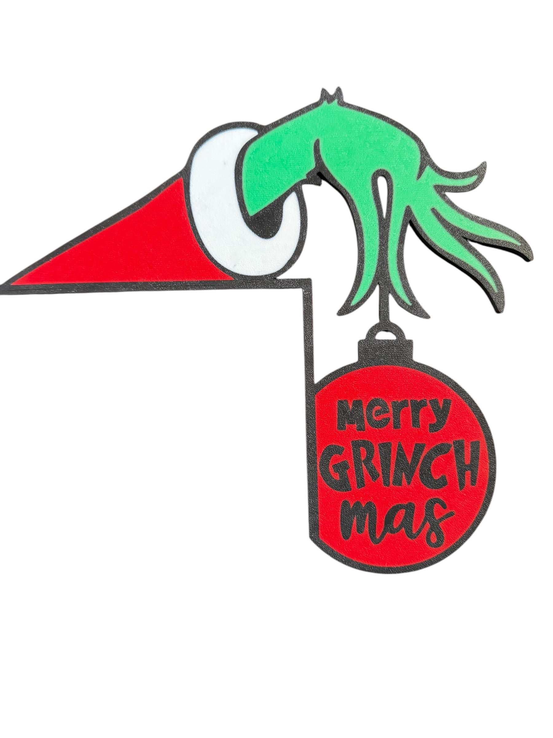 Funny Holiday Door Topper – Mischievous Green Hand Holding Ornament | Christmas Window or Door Frame Decor (Right Side)