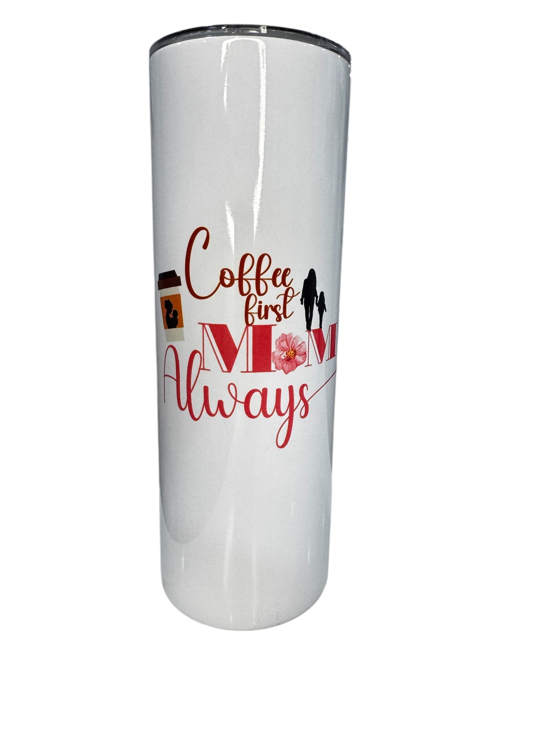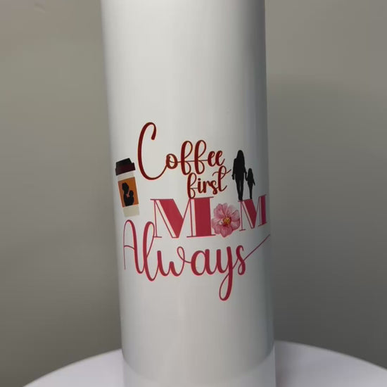 Start your day with style and warmth with our Personalized 20oz Skinny Tumbler featuring the heartfelt message "Coffee First, Mom Always." This sublimated tumbler is perfect for keeping your drinks hot or cold for hours, making it an ideal gift for moms who love their coffee or tea.