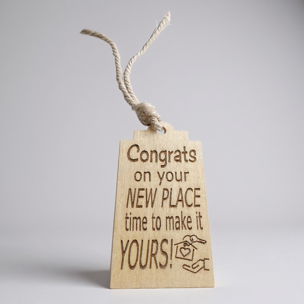 🏷️ Free Personalized Gift Tag – engraved with "Congrats on your new place time to make it yours!" included with every order.